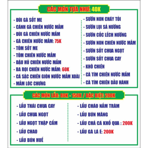 Các Món Tựa Như 40k & Món Lẩu 80k - 100k - 200k